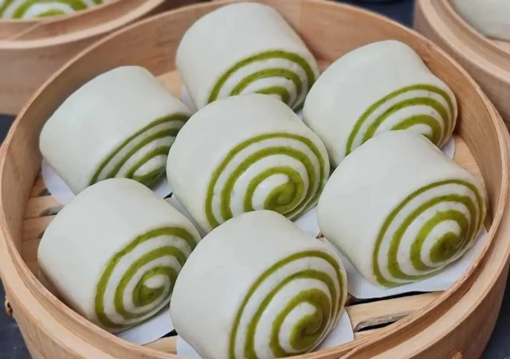 Cara bikin mantau: Tambahkan pasta pandan dan susu kental manis ke adonan setelah dicampur. Hasilnya hijau cantik, aroma wangi, dan rasa manis lembut.